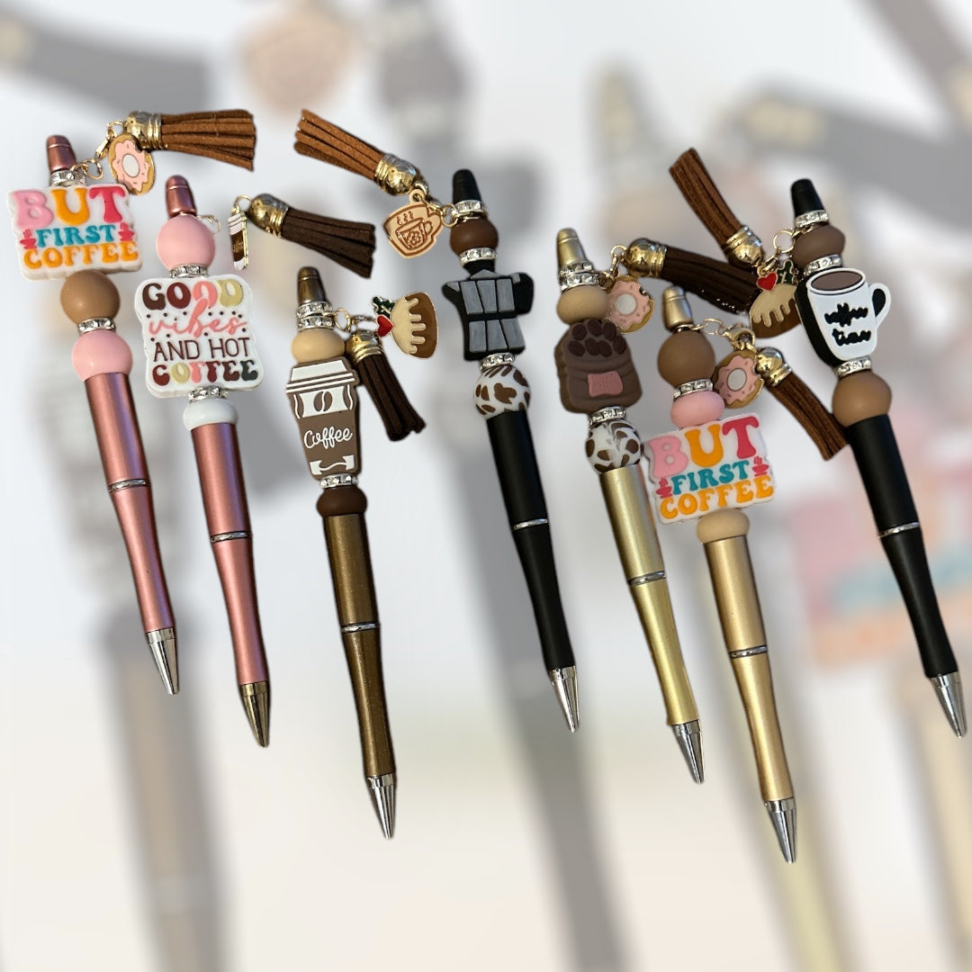 Variedad de bolígrafos con diseños de café.